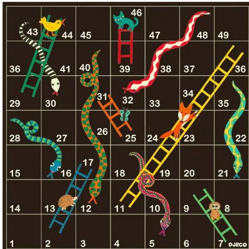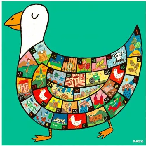 Met 4 olijke, kleurrijke bordspelen: Ludo, Ganzenbord, Slangen en Ladders, Tic Tac Toe,