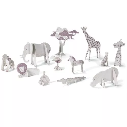 Eenmaal ingekleurd en in elkaar gezet bevat dit knutselpakket genoeg dieren voor een volledige safari of dierentuin.