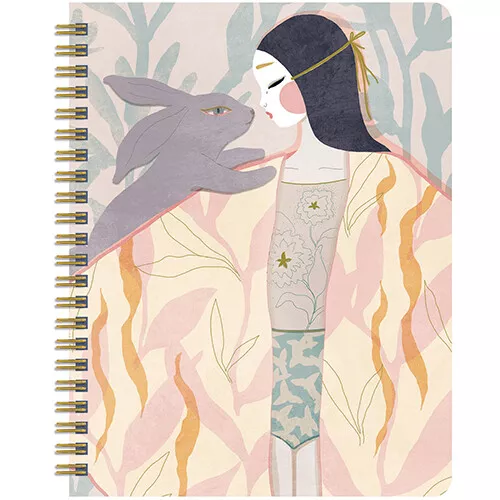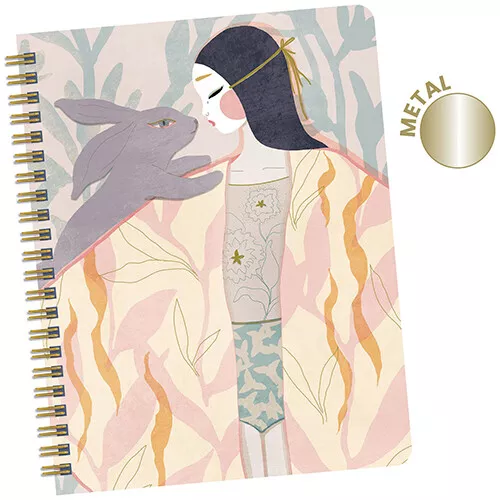 Een gelinieerd ringband schriftje of notitieboekje ‘Notebook Carnet spirale Izumi’ in A5 formaat uit de lijn Lovely Paper van het Franse merk Djeco, met een sierlijke illustratie op de voorkant met metallic details.