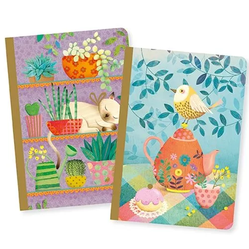 Een set van 2 kleine A 6 notitieboekjes ‘Small Notebooks Marie’, elk met een andere lieflijke illustratie op de voorkant uit de lijn Lovely Paper van het Franse merk Djeco.