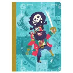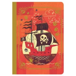 Twee handzame A6 notitieboekjes ‘Steve Little Notebooks’ uit de lijn Lovely Paper van het Franse merk Djeco. De voorkant van de boekjes hebben metallic details en avontuurlijke illustraties van een piraat en een piratenschip.