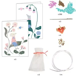 Met twee organza zakjes om de zelfgemaakte armbandjes in te bewaren, of om ze in te verpakken om cadeau te geven. Met lieflijk geïllustreerde kaartjes om persoonlijk berichtjes voor de ontvangers op te schrijven.