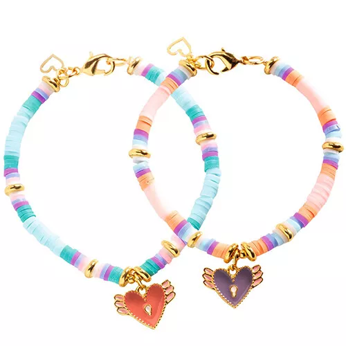 Maak twee armbanden met de gekleurde kralen en hartjes bedels uit de knutselset ‘You & Me – Heart Heishi’ van het Franse merk Djeco. Een creatieve knutselset om alleen mee aan de slag te gaan, of om samen met een vriendin vriendschapsarmbandjes te maken.