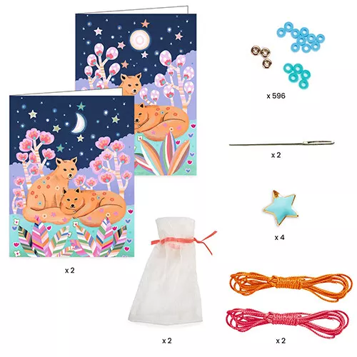 Met twee organza zakjes om de zelfgemaakte armbandjes in te bewaren, of om ze in te verpakken om cadeau te geven. Met dromerige geïllustreerde kaartjes om persoonlijk berichtjes voor de ontvangers in te schrijven.