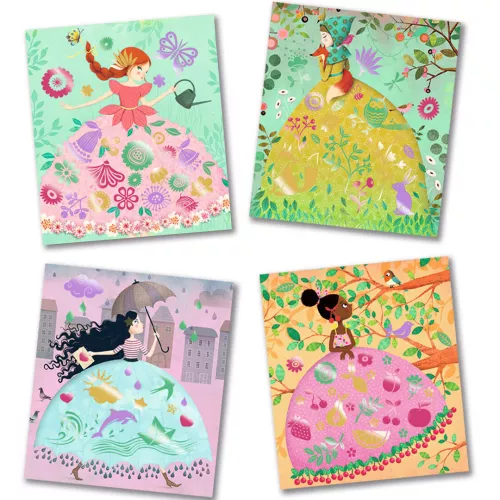 Maak de prachtige kaarten af met deze ‘Artistic Patch – Demoiselles’ van het Franse merk Djeco. Een leuk handwerkje om de mini schilderijtjes van glinsterende details te voorzien. Met vier verschillende betoverende sprookjesprinsessen en feeĆ«n.Ā