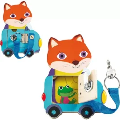Wat zit er verstopt achter de verschillende deurtjes? Oefen met het openen en sluiten van drie verschillende sluitingen met Locktou van Djeco! Dit behendigheidsspelletje bestaat uit drie houten dieren die hulp nodig hebben bij het openen van een deurtje.