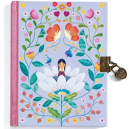 Voor de dagelijkse belevenissen thuis of op school, voor grote of kleine geheimen, het gelinieerde dagboek ‘Marie secret noteboek’ van het Franse merk Djeco, met een prachtige illustratie met gouden details op de voorkant uit de lijn Lovely Paper.
