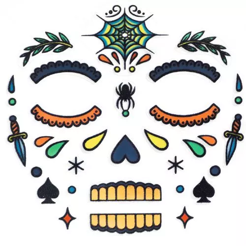 De gezichtsstickers zijn op zichzelf al prachtig, maar kunnen mooi gecombineerd worden met schmink. Een mooie look voor carnaval, halloween of andere verkleedfeestjes!