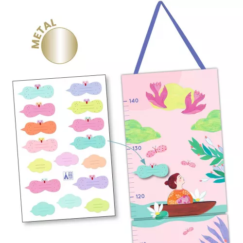 Een dromerige groeimeter ‘Lake’ uit de serie Little BIG room van het Franse merk Djeco, om bij te houden hoe snel de kleine peuter groeit! De kartonnen groeimeter is versierd met metallic details en doet kinderen dromen naar een wandeling langs het meer.