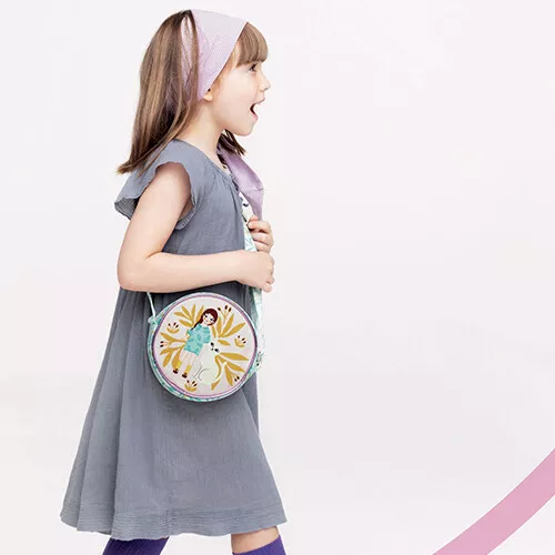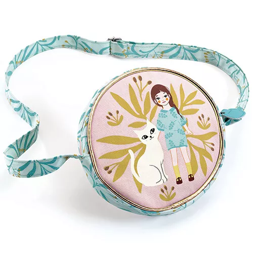 Neem je favoriete spulletjes mee in de ronde handtas met verstelbare schouderband ‘Cat’ van het Franse merk Djeco. De kindertas, met een witte poes en haar baasje, sluit met een rits.