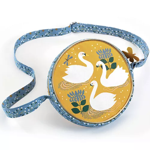 Neem je favoriete spulletjes mee in de ronde handtas met verstelbare schouderband ‘Swan’ van het Franse merk Djeco. De kindertas met elegante zwanen sluit met een rits.