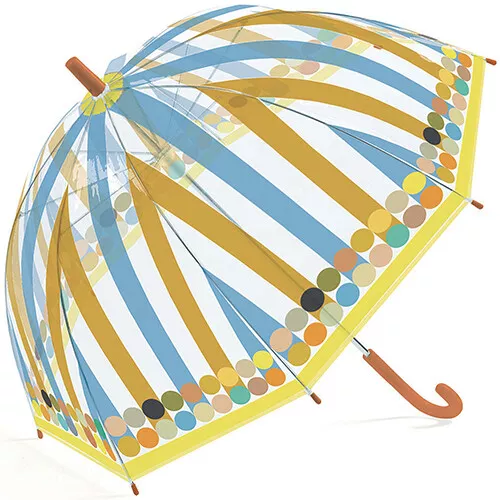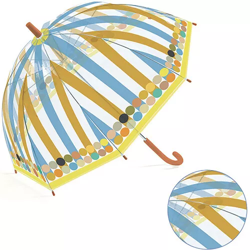 Een doorzichtige kinderparaplu ‘Graphique’ uit de serie Little Big Room van het Franse merk Djeco. De kinderparaplu bevat grafische illustraties in vrolijke kleuren. Met deze paraplu stapt de kleine graag buiten in de regen.
