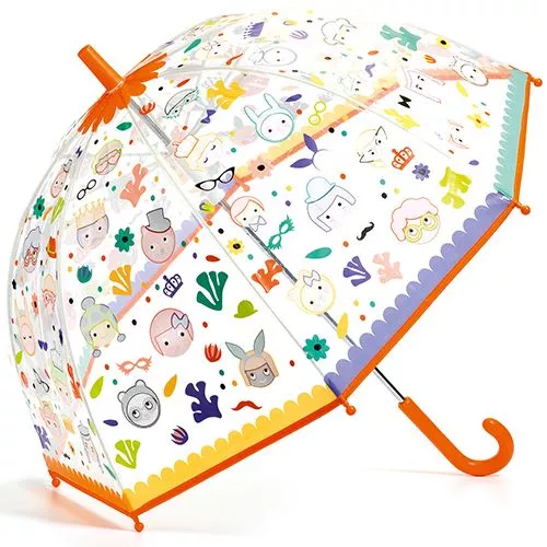 Een doorzichtige kinderparaplu ‘Faces’ uit de serie Little Big Room van het Franse merk Djeco. Bijzonder aan deze paraplu vol grappige gezichten is dat de afbeeldingen worden “ingekleurd” door de regen. Wordt de paraplu nat, dan verschijnt kleur op ieder snoetje. Met deze paraplu stapt de kleine graag buiten in de regen.