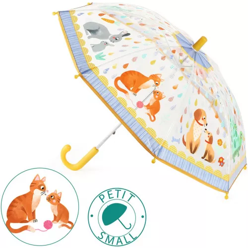 Een transparante kinderparaplu ‘Muman & bébé’ uit de serie Little Big Room van het Franse merk Djeco. Een peuter stapt graag buiten met de kinderparaplu vol lieflijke illustraties van moeders en hun baby stapt.
