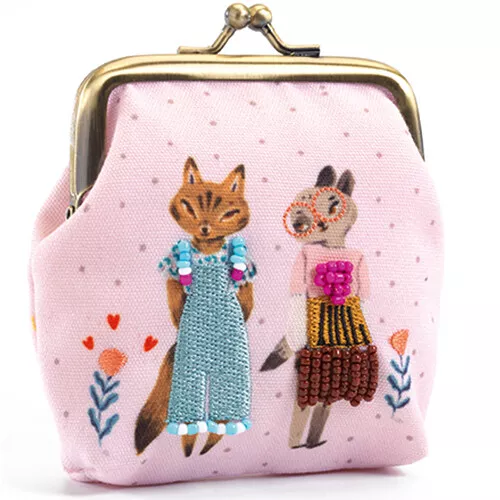 De snuisterijen zijn veilig opgeborgen in deze katoenen kinderportemonnee ‘Lovely Purse – Cats’ van het Franse merk Djeco. De buidel met snoezepoezen, geborduurde details en kraaltjes sluit met een retro beugelsluiting.