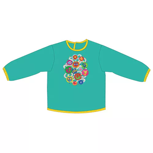 Een waterafstotend, groen kinderschort ‘Apron Muriel’ met een kleurrijke afbeelding op de voorkant van het Franse merk Djeco. Ideaal voor de kleintjes om in te kokkerellen, kliederen en te knutselen. Een must-have accessoire voor de kleine creatievelingen!
