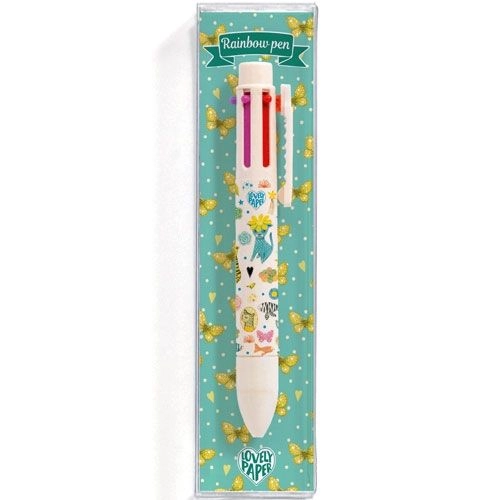 Deze ‘Rainbow pen – Lucille’ is een 6-in-1 kleuren balpen uit de lijn Lovely Paper van het Franse merk Djeco om verhalen meer kleur te geven of om de agenda nog mooier te maken met kleurrijke tekeningen.