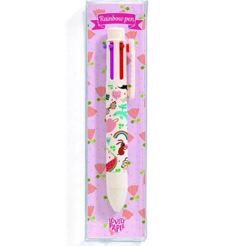 Deze ‘Rainbow pen – Tinou’ is een 6-in-1 kleuren balpen uit de lijn Lovely Paper van het Franse merk Djeco om verhalen meer kleur te geven of om de agenda nog mooier te maken met kleurrijke tekeningen.