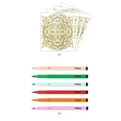 Het creatieve tekensetje bevat vier kleurplaten die kinderen met behulp van de viltstiften kunnen inkleuren. De kleurplaten hebben verhoogde gouden glitter randen, waardoor binnen de lijntjes kleuren makkelijker gaat en ook de kleuren niet onverwachts mengen!