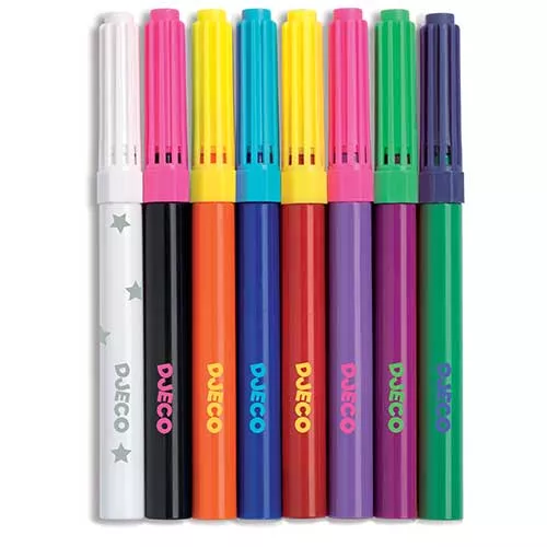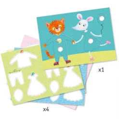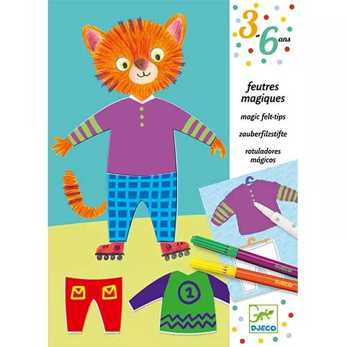 Deze creatieve set is een leuke kleuractiviteit van het merk Djeco voor beginnende kunstenaars. Het beroemde vormenbord, maar dan leuker. Kleur de kleding van Elliot en Zoe en ga er met de witte viltstift overheen, het lijkt wel toveren. De kleuren veranderen en de motieven worden zichtbaar.