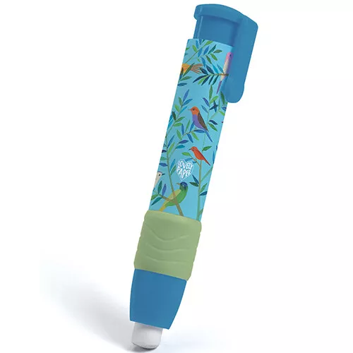 Een gum-pen ‘Gomme stylo Judith’ van het Franse merk Djeco. Handig om altijd in een etui of op een kinderbureau te hebben. De gum is eenvoudig vast te houden door zijn vorm. Druk op de knop aan de achterkant om de gum te laten zakken. Houd de knop ingedrukt en druk de gum naar binnen om hem eenvoudig op te bergen.