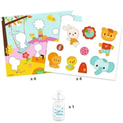 Kinderen maken papieren collages met allerlei vrolijke dieren met dit knutselpakket ‘My First Collages’ van het Franse merk Djeco.