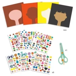 Een knutselpakket ‘Create with Stickers – Hairdresser’ van het Franse merk Djeco voor kleine kappers. Gebruik de bijgeleverde schaar om de leukste, gekste of meest stijlvolle kapsels te knippen en versier ze vervolgens met allerlei stickers.