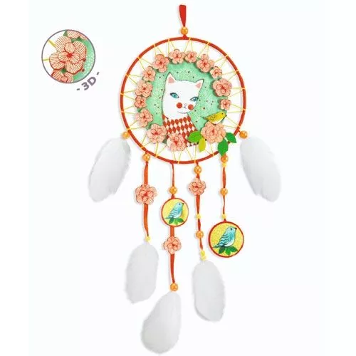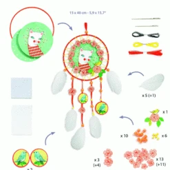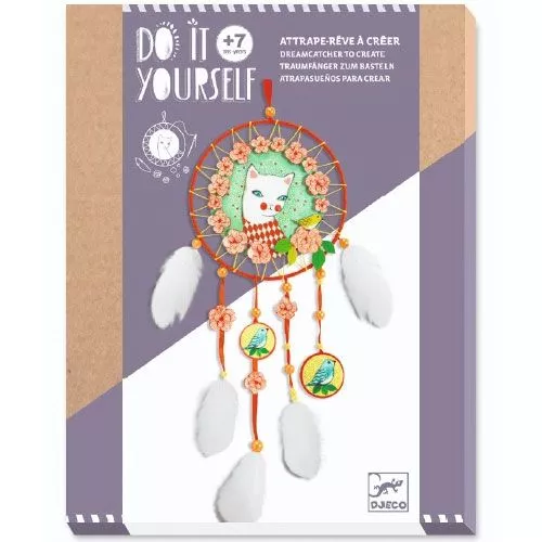 Maak een poeslieve dromenvanger met deze Do It Yourself knutselset ‘Arlecat’ van het Franse merk Djeco. Vlecht eerst zelf de dromenvanger volgens de instructies en versier deze met bloemen, linten, veren, kralen en de elegante witte poes.
