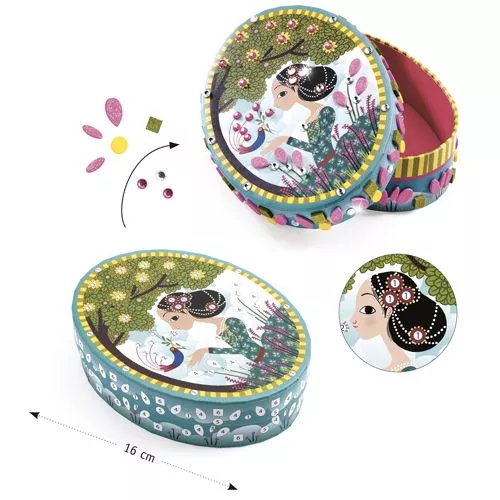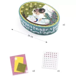 Kinderen kunnen hun eigen sieradendoosje of schatkistje maken met deze Do It Yourself knutselset ‘Little Secrets’ van het Franse merk Djeco. De zelfklevende mozaïek plakkertjes, glimmende stickers en decoratiesteentjes hebben allemaal een eigen plekje, aangegeven met cijfers. Zo kunnen de knutselaars het opbergbakje prachtig versieren!