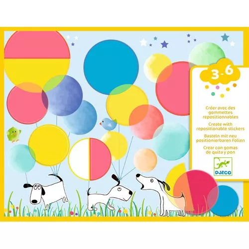 De ‘Creëren met herbruikbare puffy stickers’ set van het Franse merk Djeco. De stickers uit de knutselset zijn magisch: de kleuren vermengen zich!