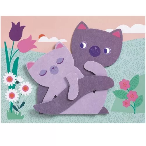 Kinderen maken echte kunstwerken van papier met dit knutselpakket ‘Get Creative with Paper – Hugs’ van het Franse merk Djeco.