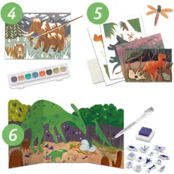 Inclusief waterverf, penseel, stickers, stempels, stempelkussen, krasstylus en instructieboekje.