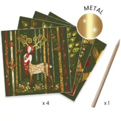 Kinderen gebruiken de bijgeleverde kraspen om de waslaag weg te krassen. Stukje bij beetje onthullen de prenten hun sierlijke patronen en gouden highlights en ontstaan wonderschone kunstwerkjes.