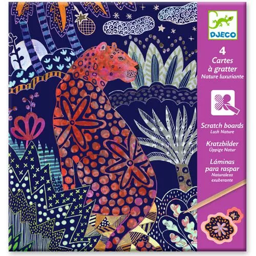 Een wonderlijke krasset ‘Nature luxuriante’ van het Franse merk Djeco. Kras voorzichtig de donkere laag weg om mooie motieven te maken of leuke verrassingen te ontdekken.