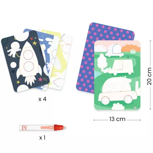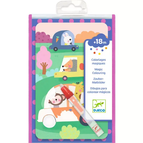 Deze magische kleurplaten ‘En Route’ van het Franse merk Djeco is een bijzondere kleuractiviteit voor beginnende kunstenaars. Met de magische stift kunnen kinderen kleuren met water door ermee over de witte tekeningen te gaan. De kleuren toveren tevoorschijn!