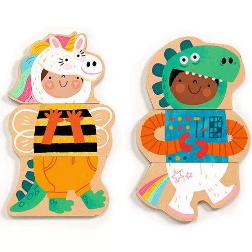 Is het poppetje verkleed als eenhoorn, astronaut of dino? Maak de poppetjes compleet met 24 kleurrijke magneten ‘Fancy-Up’ van het Franse merk Djeco.