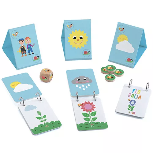 Bij het memoriespel ‘Floralia’ van het Franse merk Djeco zijn alle zaadjes gepoot en gaat de wedstrijd tussen de kleine tuinmannen en tuinvrouwen beginnen. Wiens bloem bloeit als eerst?