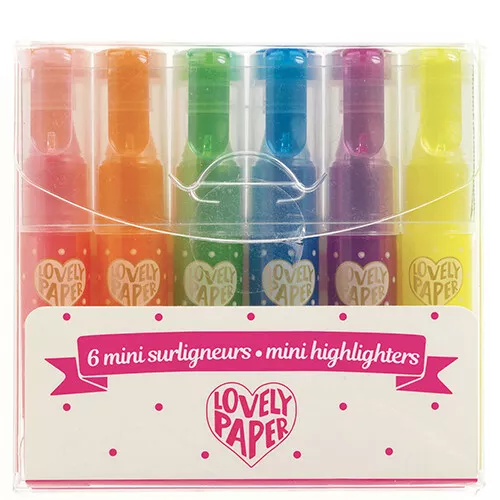 Zes mini, neon markeerstiften ‘6 Mini Highlighters’ uit de serie Lovely Paper van het franse merk Djeco.