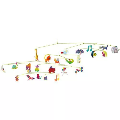 Een vrolijke mobiel van het Franse merk Djeco. De mobiel heeft zo´n 24 hangers, gemaakt van stevig karton.