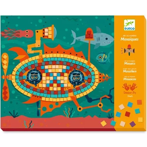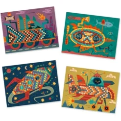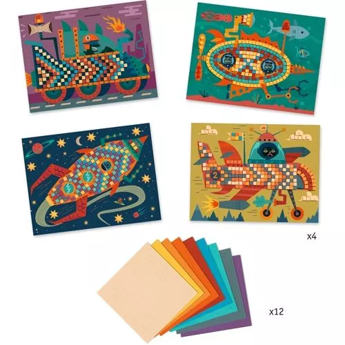Deze ‘kunst op nummer’ inlegset van het Franse merk Djeco laat de voertuigen prachtig schitteren met mozaïek mousse. Creatief speelgoed voor kleine vingertjes.