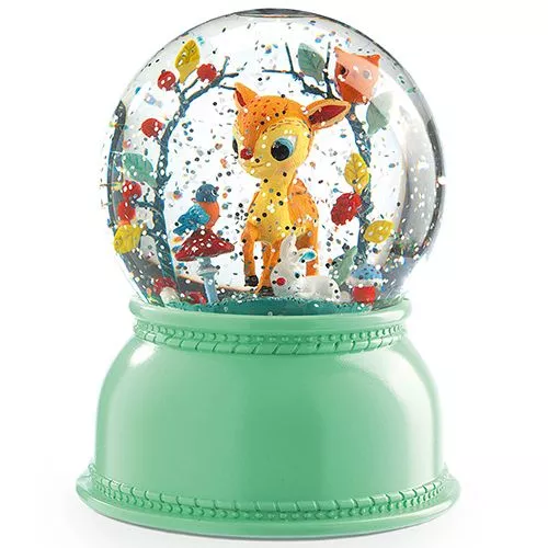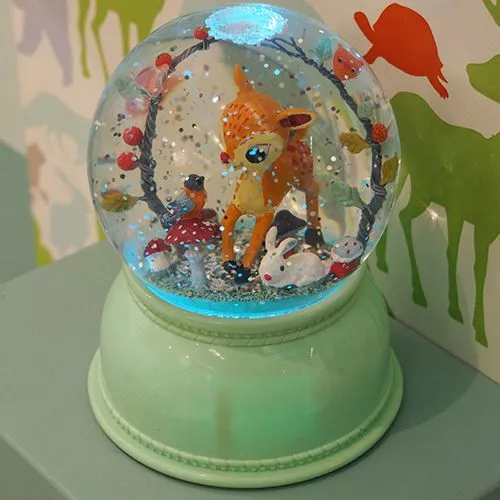 Een betoverend nachtlampje en sneeuwbol in één, uit de serie ‘Little BIG room’ van het Franse merk Djeco.