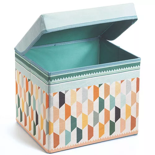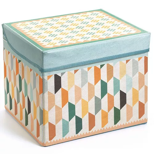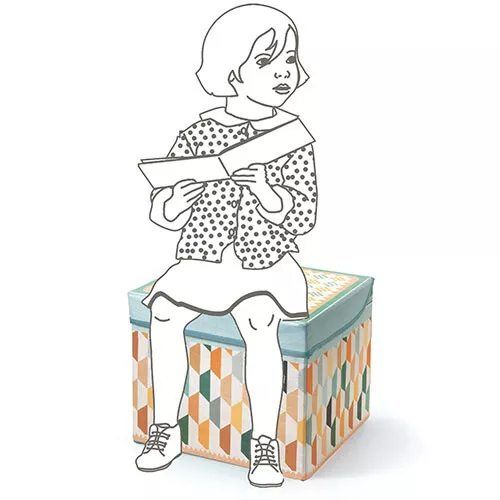 Een vrolijk gekleurde opbergdoos ‘Orient’ van het Franse merk Djeco, die ook als kinderkrukje gebruikt kan worden. Om op te zitten én speelgoed in op te bergen!