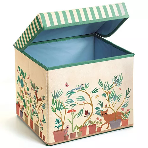 Een vrolijk gekleurde opbergdoos ‘Garden’ van het Franse merk Djeco, die ook als kinderkrukje gebruikt kan worden. Om op te zitten én speelgoed in op te bergen!