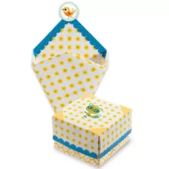 Met dit knutselsetje van het merk Djeco kunnen kinderen mooie papieren doosjes vouwen. Perfect voor een kinderfeestje of knutselmiddag!