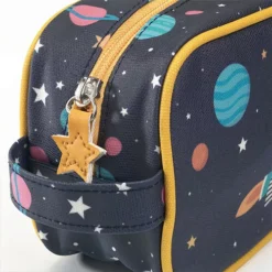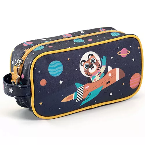 Deze grote pennenetui ‘Direction Space’ van het Franse merk Djeco heeft een stoer design met een tijgerastronaut zwevend tussen de sterren en planeten! Een etui voor potloden en pennen, thuis en op school.