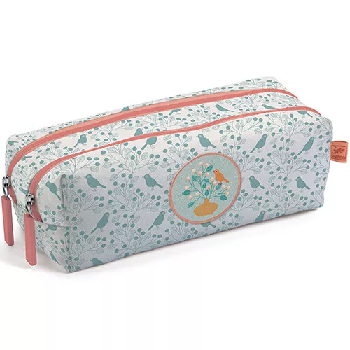 Een pennenetui in zachte kleuren met twee vakken ‘Romantic’ van het Franse merk Djeco om pennen en potloden in te bewaren, thuis of op school.
