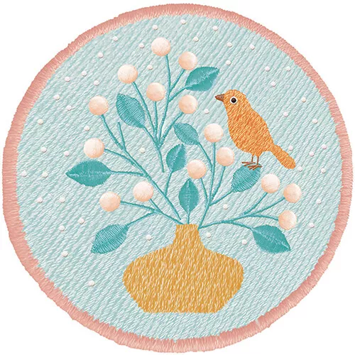 De kinderetui heeft een geborduurd embleem met een plant en een vogeltje en is voorzien van twee grote compartimenten die elk sluiten met een rits.