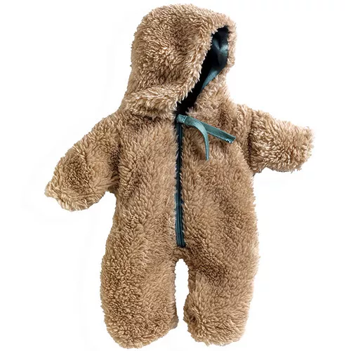Een heerlijk zacht, teddy poppenpakje van het Franse merk Djeco voor de koudere dagen. De behaaglijke poppenonesie heeft een capuchon en sluit met een rits.