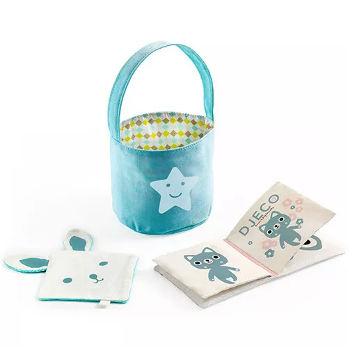 Waneer het bedtijd is komt dit poppenspeelgoed mandje ‘Sweet Dreams’ van het Franse merk Djeco goed van pas. Lees samen met de Pomea babypop het knisperende babyboekje en dek de pop toe onder het dekentje met konijnenoren.
