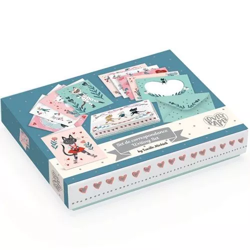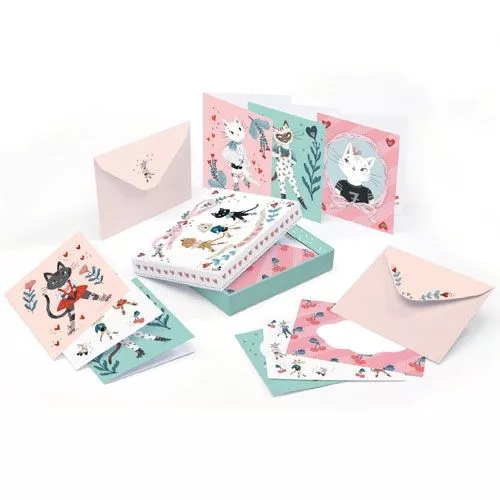 Een doosje met prachtige postkaarten en enveloppen uit de Lovely Paper collectie van het Franse merk Djeco.